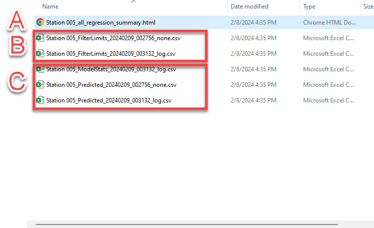 Results consist of the following details and are labeled by station and date and time associated with the analysis run:
