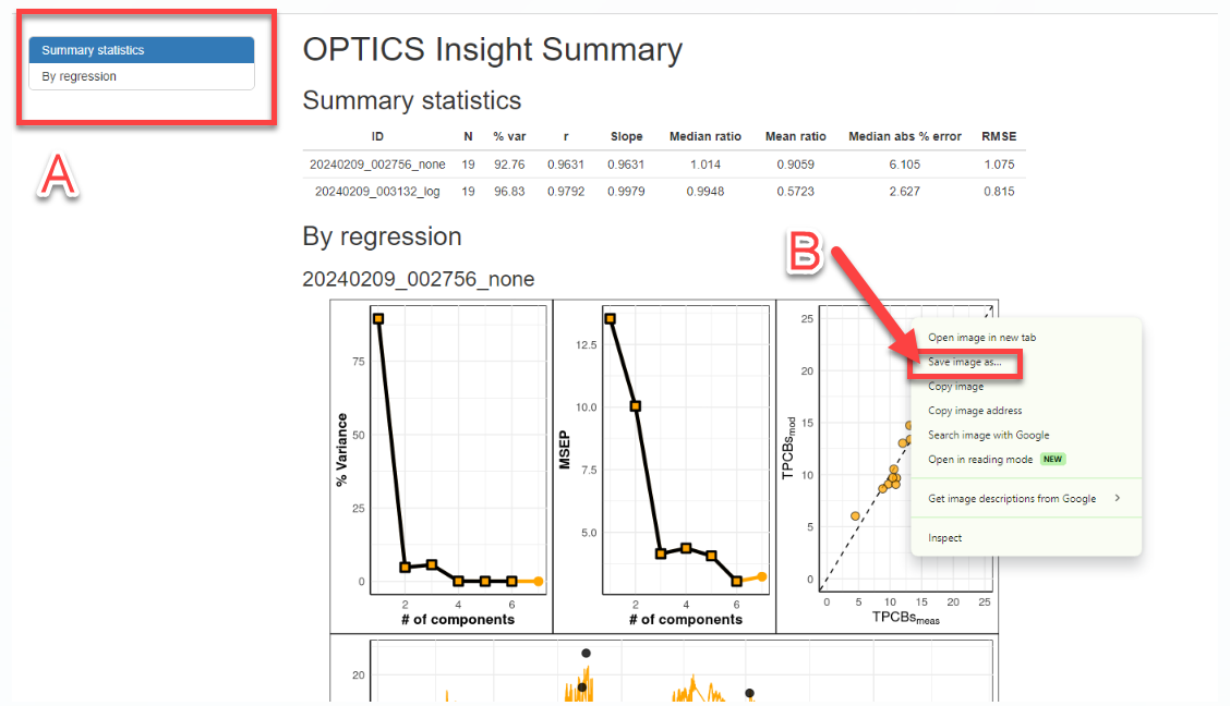 B) For all figures, you can right click and “Save image as…” in order to save specific regression figures to .png or .jpg format for presentations or other media.